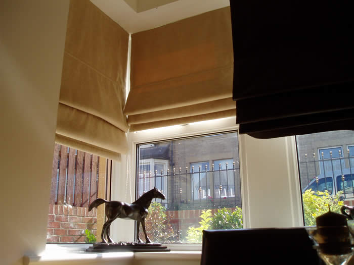 Roman Blinds Add warmth and sophistication to your home with our beautiful Roman blinds. Roman blinds are easy to adjust the height that you require without the use of a cleat. We only use a chain operated system similar to a roller blind. All our blinds are fully lined with Blackout lining which gives you a modern alternative to curtains. With our huge collection of soft fabrics, from plain to prints, suede to even leather, there will be a style to suit any room in any home, whether it is modern or classic in design. There is even a choice of scalloped finishes to enhance your blind further, such as wavy, Taj Mahal, or the classic scallop. |