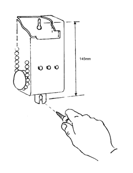 Hold the controller in position on the wall with the chain over the wheel (Do not add tension to the chain). Now mark the wall at the mid position of the U bracket on the bottom of the controller as shown on the diagram below.